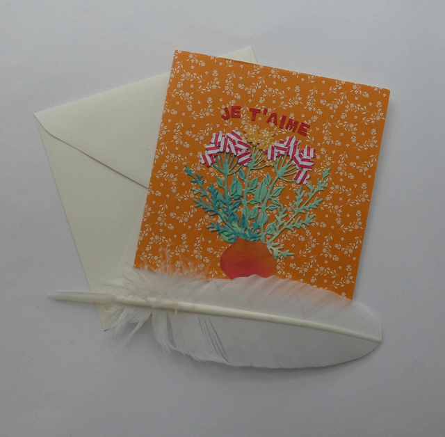 Avec cette belle carte de vœux faite à la main et unique, tu pourras transmettre tes vœux pour la Saint-Valentin à l'Être que tu aimes. Ce beau bouquet de fleurs saura lui faire plaisir, à n'en pas douter. La carte mesure environ 15 cm sur 15 cm.Elle est légèrement en relief.