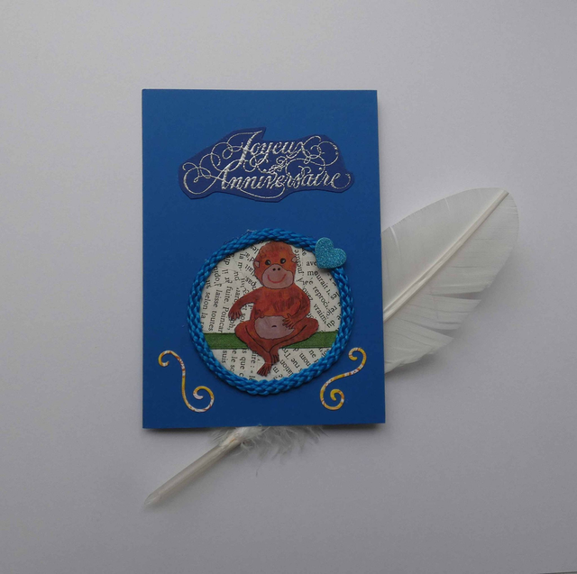 Avec cette carte de vœux unique et fabriquée artisanalement dans le canton de jour en Suisse tu pourras souhaiter un joyeux anniversaire à une personne chère à ton cœur. En particulier si elle aime la nature, les animaux et surtout les orangs-outans. Celui-ci a été dessiné et peint à la main par ma dessinatrice, puis je l'ai redimensionné, imprimé, découpé, mis en page et collé.