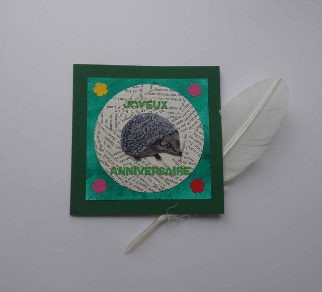 La carte artisanale au joli hérisson d'anniversaire