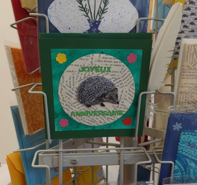 Son hérisson a été dessiné et peint à la main par ma dessinatrice. Puis je l'ai redimensionné, imprimé, découpé, mis en page et collé.