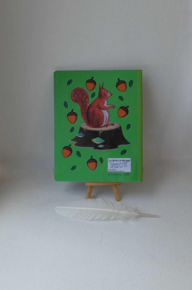 L'écureuil a été dessiné et peint à la main par ma dessinatrice. Puis je l'ai redimensionné et dupliqué. Je les ai ensuite tous les deux imprimés, découpés, mis en page et collé.