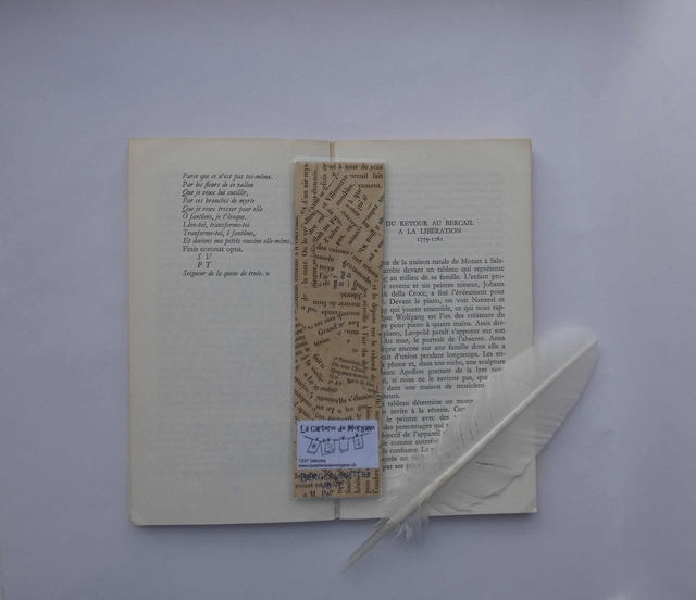 Ce signet est unique et il reflète la lumière. Sa taille est d'environ 5 cm de longueur et 19 cm de hauteur.