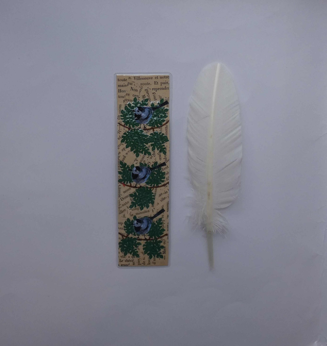 Voici trois bergeronnettes grises réunies sur un marque-page artisanal impatientent de passer de merveilleux moments de lecture en ta compagnie.