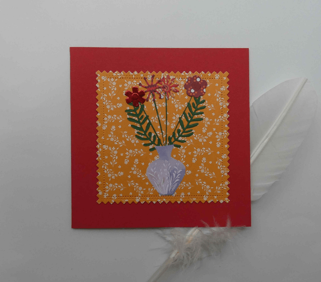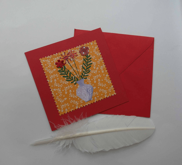 Pour réaliser cette carte de vœux unique, je me suis amusée à demander à une IA de me dessiner un vase. Je l'ai imprimé, découpé et je m'en suis servi pour faire cette carte de vœux. Qu'on l'aime ou qu'on la déteste, l'IA est un outil au service de la créativité. L'important à mes yeux est de ne pas tout lui laisser faire.