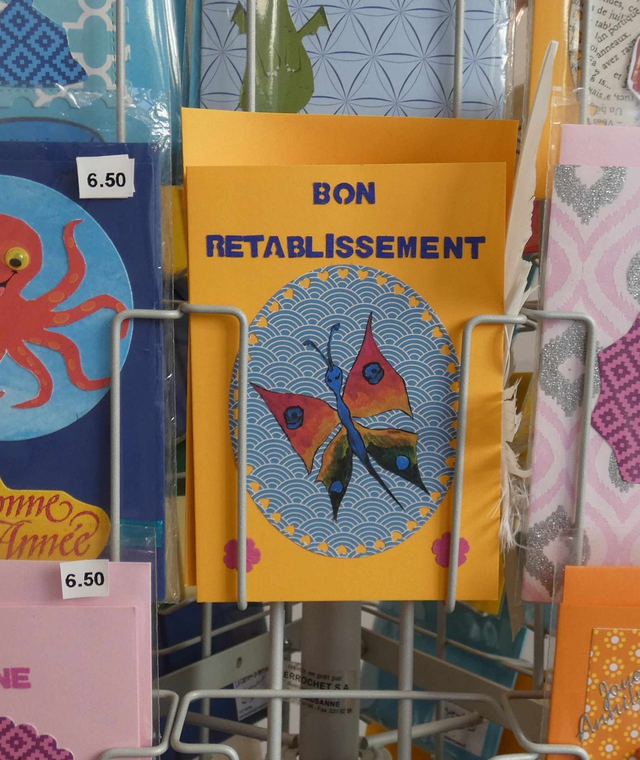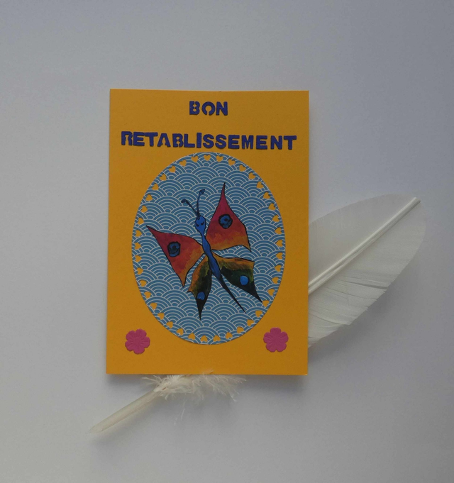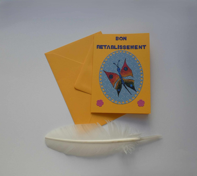 Unique et fabriquée artisanalement en Suisse, cette carte de vœux conviendra particulièrement bien pour souhaiter un bon rétablissement à une personne malade ou accidentée se trouvant à l'hôpital ou à domicile.